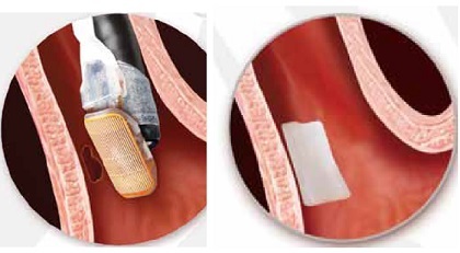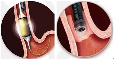對於黏膜病變如食道鱗狀細胞上皮內瘤變 (ESCN)或巴瑞特氏症 (Barrett’s esophagus), 也可以考慮在內視鏡導引下,進行局部片狀,或環狀的射頻消融治療,對於早期癌症或是癌前病變,有防範為然的療效。本治療可採用病人清醒鎮靜下操作,醫生配合使用不同直徑和大小的射頻消融導管進行操作,操作時間短,病人痛苦小,創傷也較小,安全性高,併發症比EMR少,小於 0.22%。 治療過程首先要插入內視鏡確定和記錄解剖學標誌,根據以前檢查結果,確定標記線和治療區間,測量出食道內徑及病灶上下長度。將消融導管沿內視鏡中操作管道插入至目標群組織的近邊,再開始遞送消融能量,接著向遠端移動導管,達到治療所有的目標群組織,治療後噴灑 Lugol’s 碘溶液(1.25%),用於分析完成治療範圍。